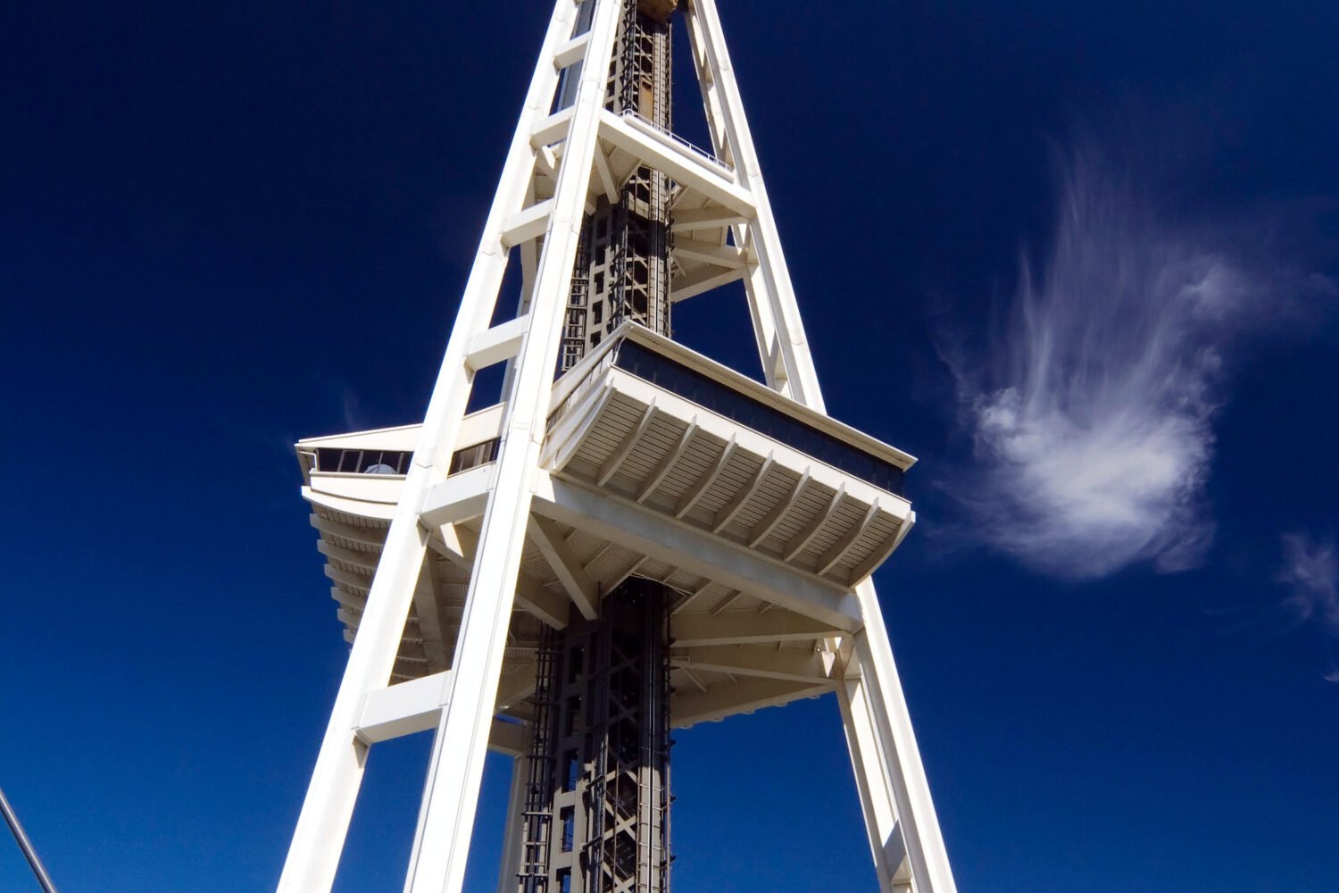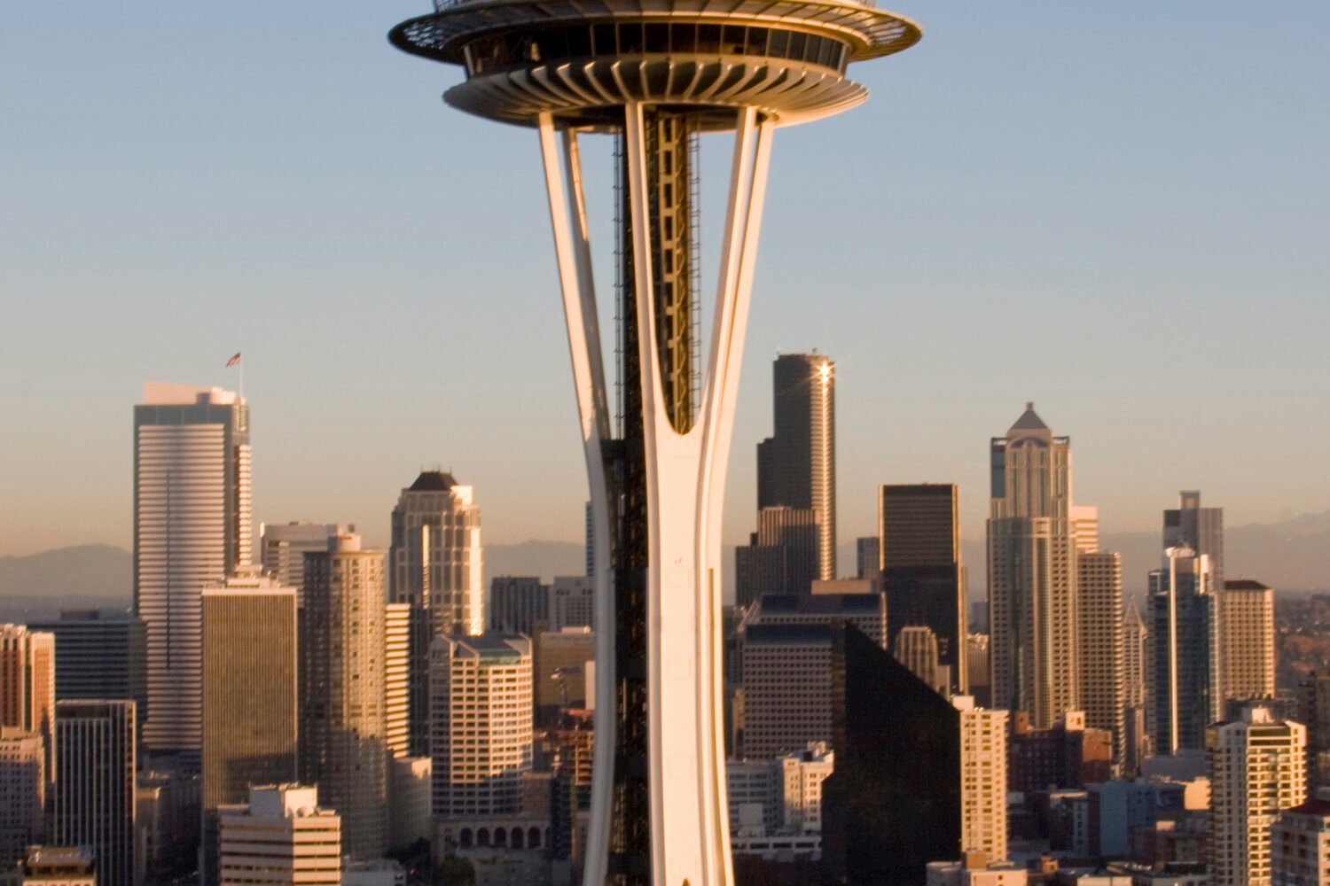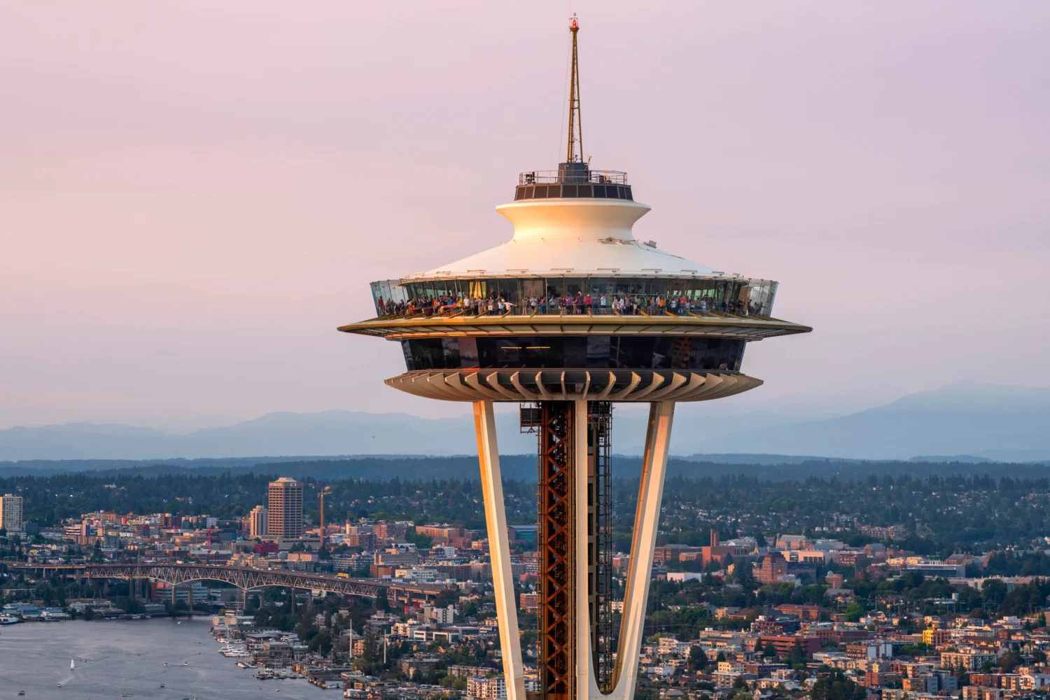 Space Needle adalah menara observasi ikonik yang terletak di Seattle, Washington, dan telah menjadi simbol kota tersebut sejak pembangunannya untuk World’s Fair tahun 1962. Menara ini memiliki tinggi 605 kaki (184 meter) dan menawarkan pemandangan 360 derajat yang menakjubkan dari kota Seattle, termasuk panorama Gunung Rainier, Teluk Elliott, serta Pegunungan Olympic dan Cascade.